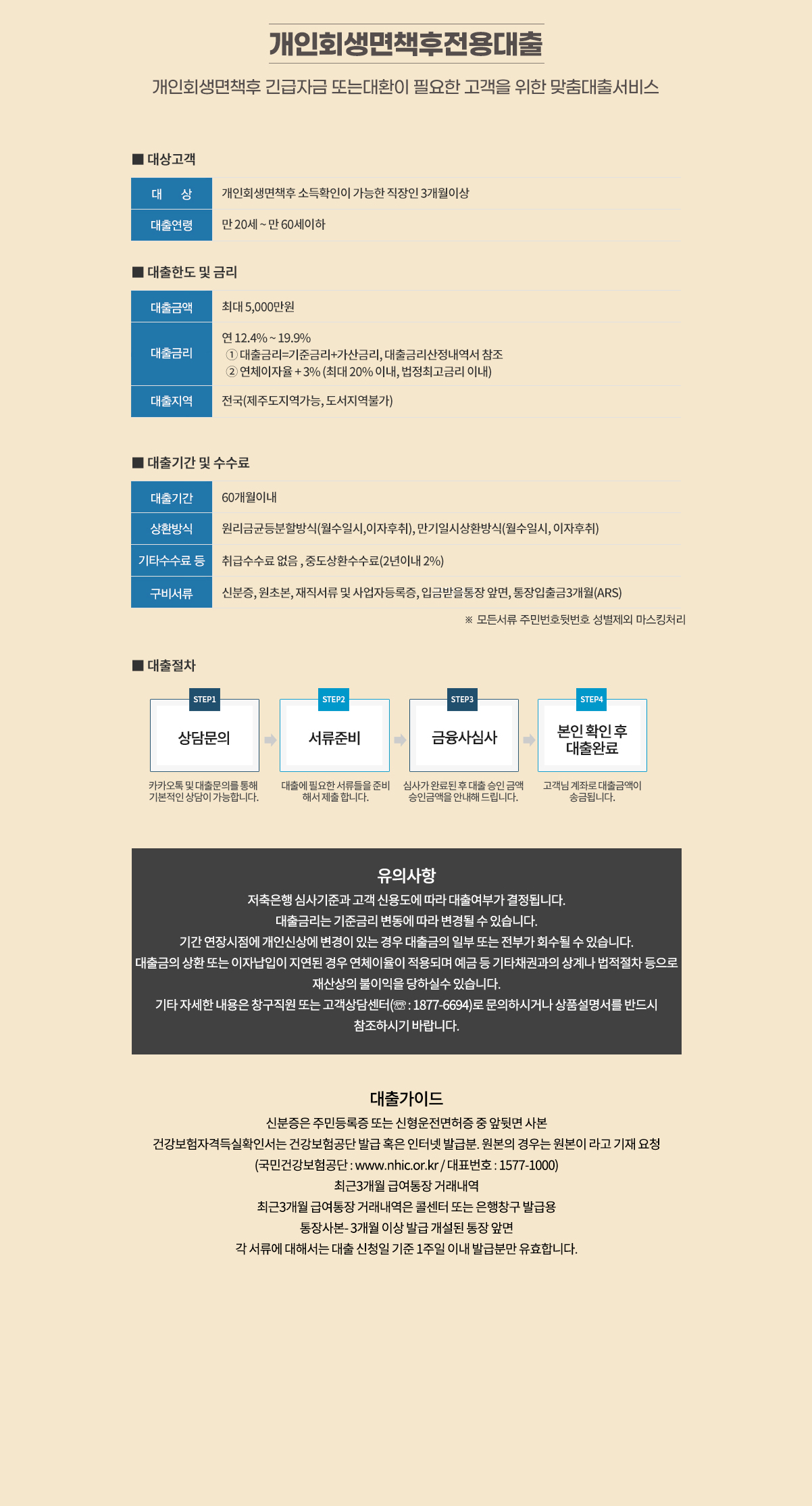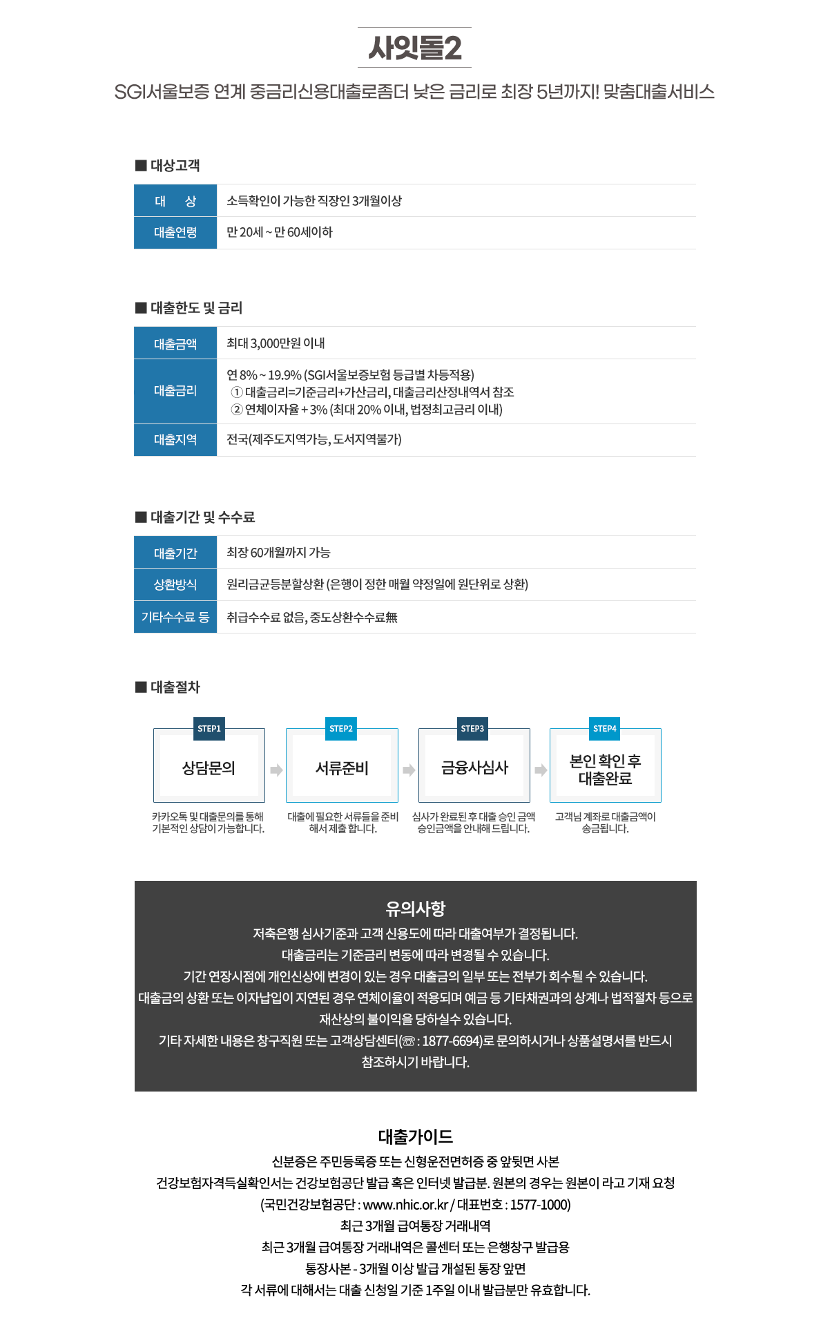 만 20세 ~ 만 60세이하 / 대출금액 최대 2,000만원 이내