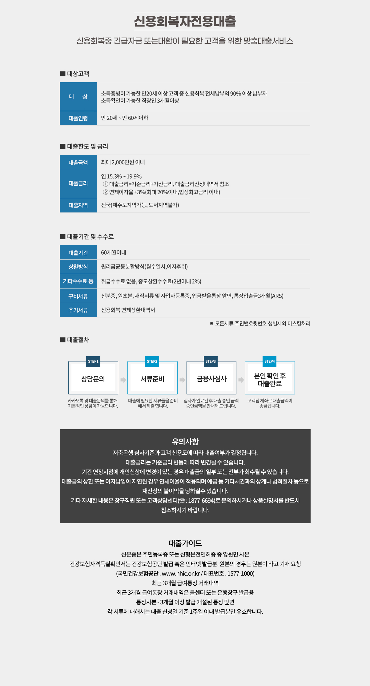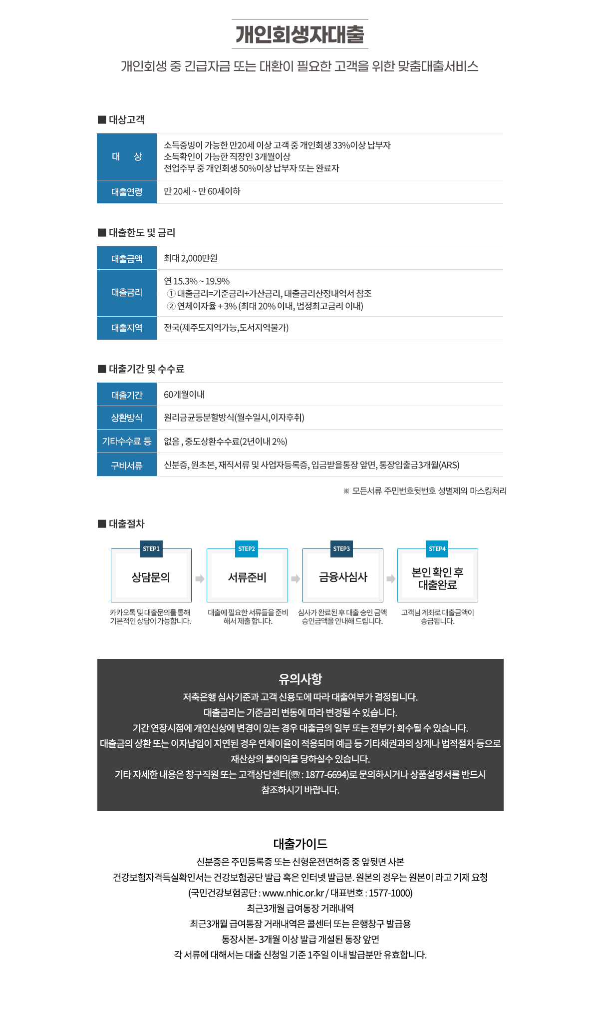 만 20세 ~ 만 60세이하 / 대출금액 최대 2,000만원 이내